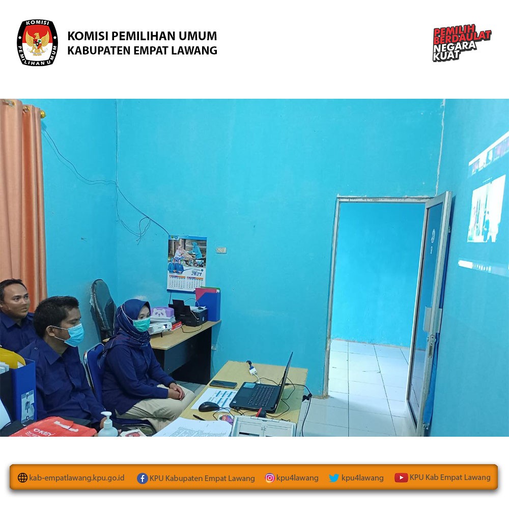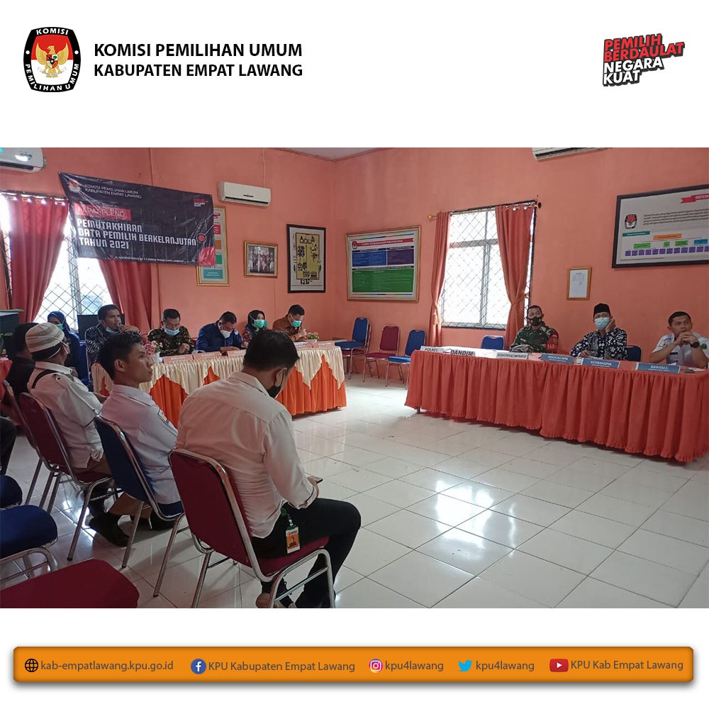 KPU Kabupaten Empat Lawang melaksanakan Rapat Koordinasi Rekapitulasi Pemutakhiran Data Pemilih Periode Bulan April 2021. Rakor dimulai pukul 10.00 WIB s.d selesai, dan dihadiri Bawaslu Kab Empat Lawang, Dandim 0405 Lahat, Didukcapil Empat Lawang, Kemenag Kab Empat Lawang dan Partai Politik.