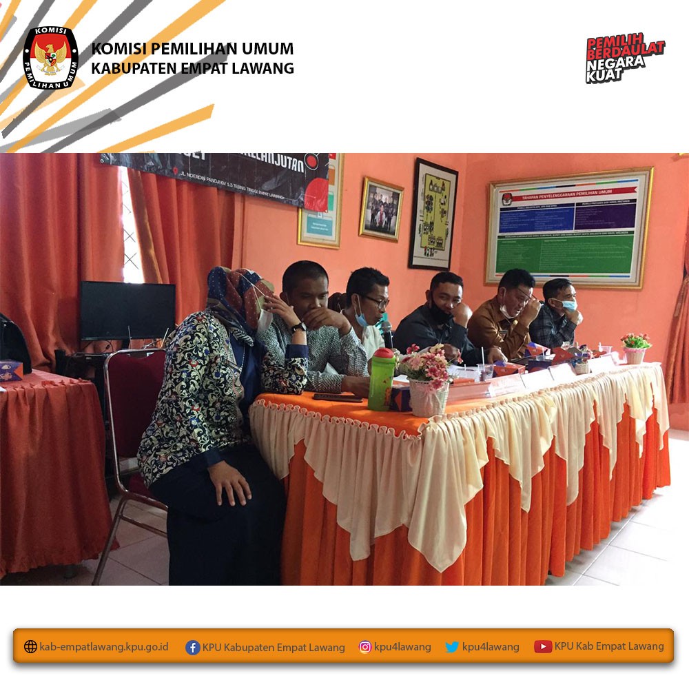 Rapat dihadiri oleh Bawaslu Kab Empat Lawang, Kesbangpol Kab Empat Lawang, Dandim 0405 Lahat, Kemenag Kab Empat Lawang, Didukcapil Empat Lawang, dan Partai Politik. Acara dimulai pukul 10.00 WIB s.d selesai, di Kantor KPU Kabupaten Empat Lawang.