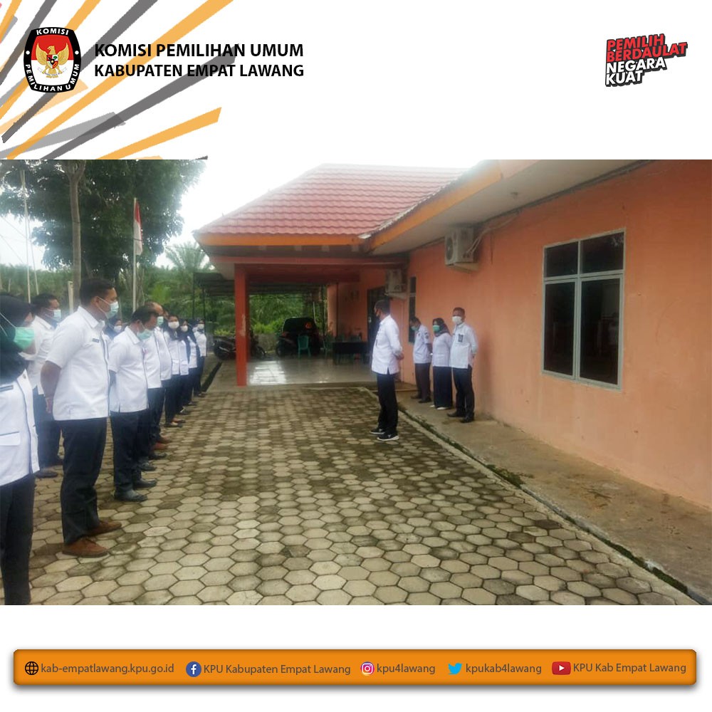 Apel dipimpin oleh Ketua KPU Kabupaten Empat Lawang (Eskan Budiman, S.Pd.) yang diikuti oleh Sekretaris, Para Sub Koordinator, Staf Fungsional dan Honorer di Lingkungan Sekretariat KPU Kabupaten Empat Lawang. Apel dimulai Pukul 08.00 WIB s.d selesai, dimana dalam amanatnya menyampaikan kepada seluruh pegawai agar tetap menjaga protokol kesehatan.