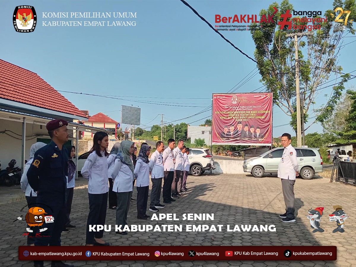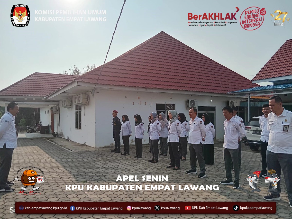 #TemanPemilih, KPU Kabupaten Empat Lawang melaksanakan Apel Senin Pagi di Halaman Kantor KPU kabupaten Empat Lawang pada Senin, 22 Juli 2024.
