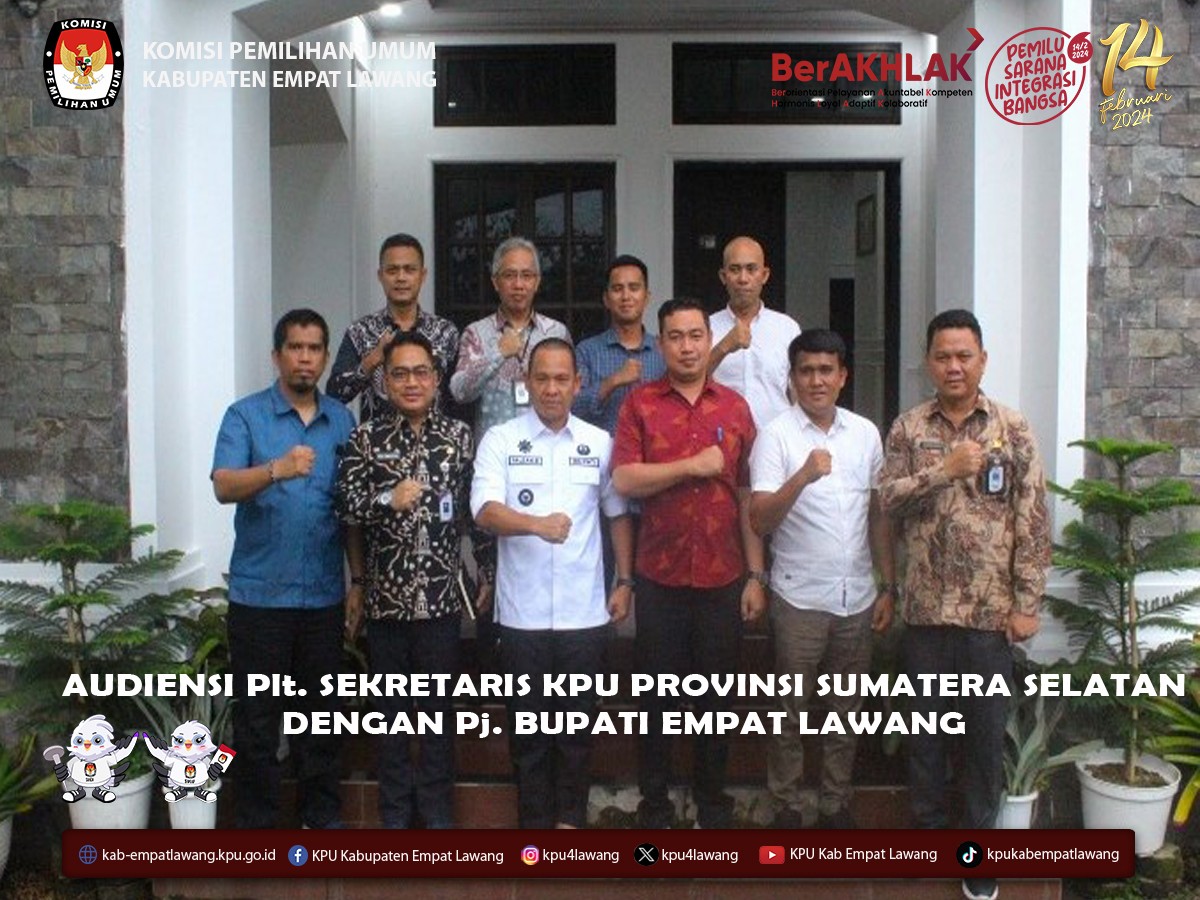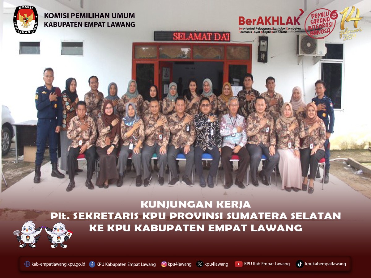#TemanPemilih, Plt Sekretaris KPU Provinsi Sumatera Selatan (Eko Iswantoro) beserta Kabag Perencanaan, Data dan Informasi (Ahmad Zakir) dan Kasubbag Umum dan Logistik (Muhammad Habibullah) mengunjungi KPU Kabupaten Empat Lawang.