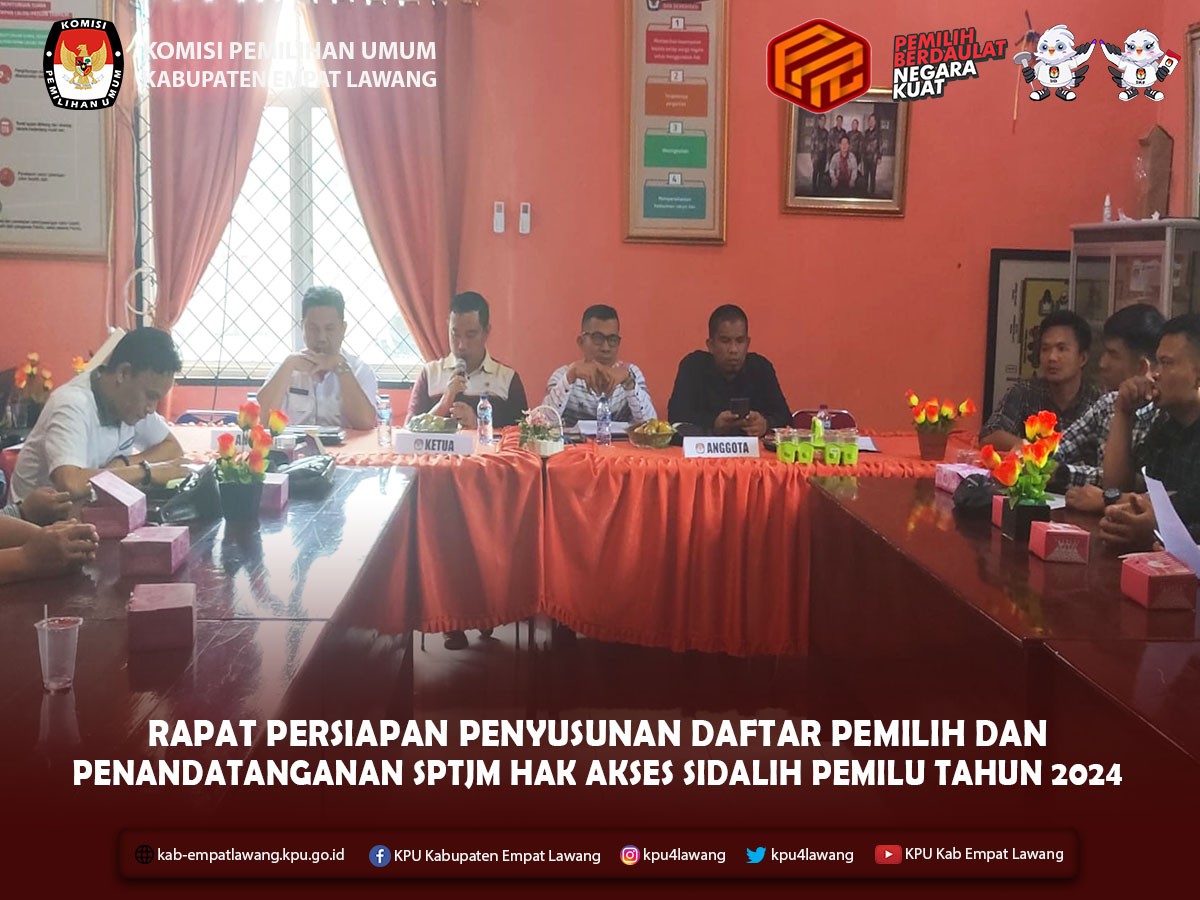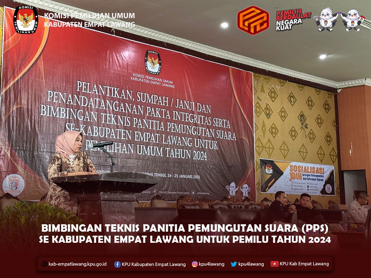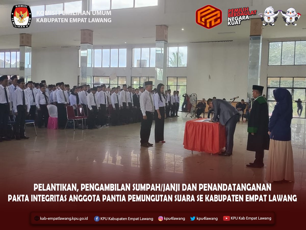 #TemanPemilih, KPU Kabupaten Empat Lawang melaksanakan Pelantikan, Pengambilan Sumpah/Janji dan Penandatanganan Pakta Integritas Anggota Panitia Pemungutan Suara (PPS) se-Kabupaten Empat Lawang untuk Pemilihan Umum Tahun 2024.