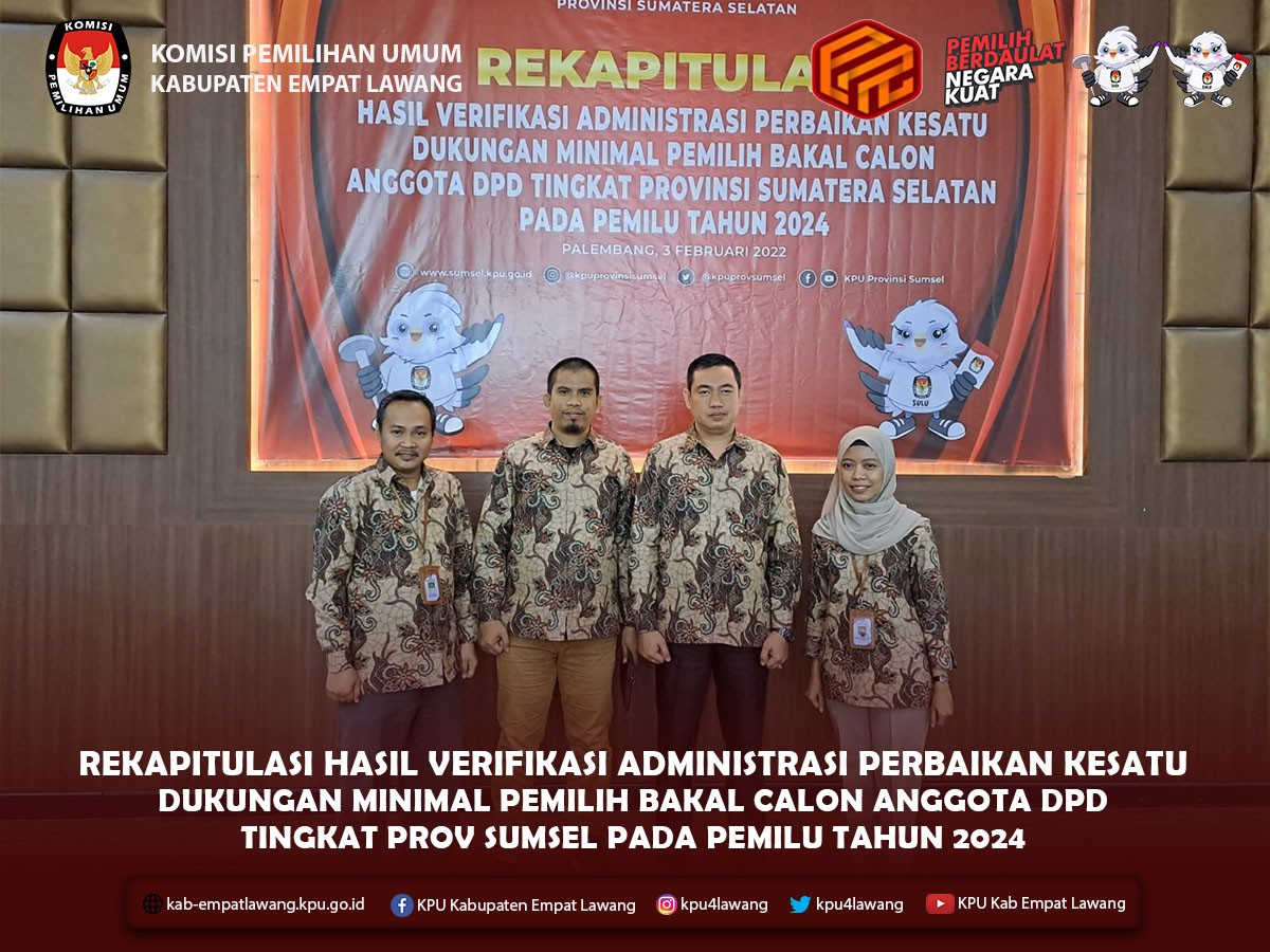 Bertempat di Gedung Serbaguna Pemkab Empat Lawang di Tebing Tinggi, sebanyak 468 Anggota PPS dilantik oleh Ketua KPU Kabupaten Empat Lawang Eskan Budiman. Hadir juga Bupati Empat Lawang, Ketua KPU Provinsi Sumatera Selatan, Anggota KPU Kab Empat Lawang, Ketua dan Anggota Bawaslu Kab Empat Lawang, Dandim 0405 Lahat, Polres Empat Lawang, Kepala Kesbangpol Kab Empat Lawang, Kejari Kab Empat Lawang, Disdukcapil Kab Empat Lawang, Kemenag Kab Empat Lawang, Camat seKab Empat Lawang, dan Ketua PPK seKab Empat Lawang.