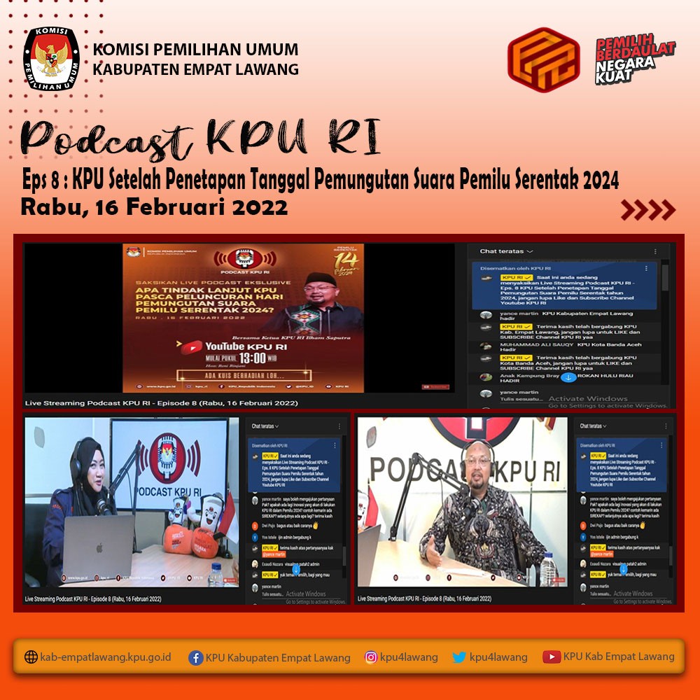 #TemanPemilih, KPU Kabupaten Empat Lawang mengikuti Live Streaming Podcast KPU RI Episode 8 dengan tema "KPU Setelah Penetapan Hari Pemungutan Suara Pemilu Serentak Tahun 2024" melalui kanal youtube KPU RI.