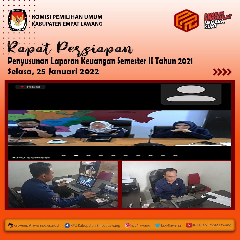 #TemanPemilih, KPU Kabupaten Empat Lawang mengikuti Rapat Persiapan Penyusunan Laporan Keuangan Semester II Tahun 2021 yang diselenggarakan KPU Prov Sumsel. Rapat diagendakan membahas persiapan penyusunan laporan keuangan terkait rekonsiliasi dan persiapan laporan keuangan triwulan III Tahun 2021.