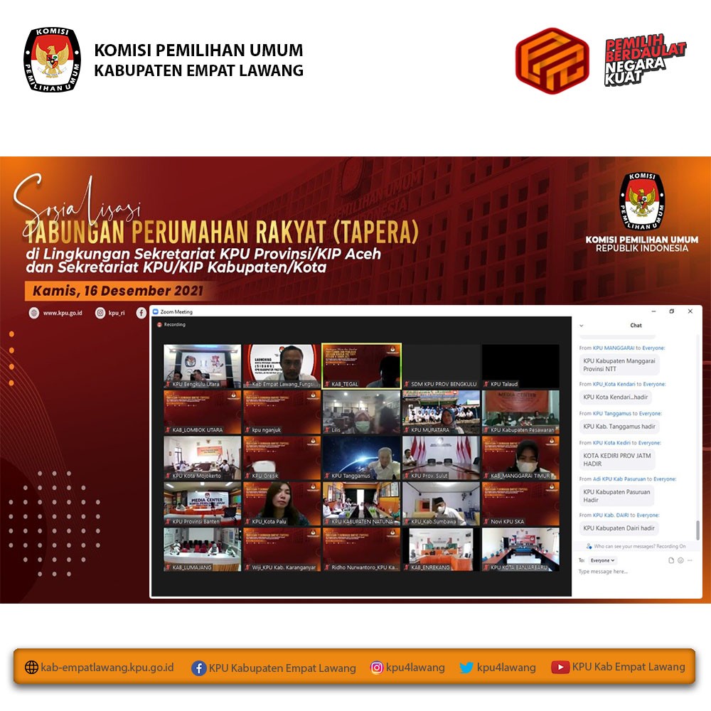Turut Hadir Komisioner/Anggota KPU RI yang lainnya, Sekretaris Jenderal KPU RI (Bernad Dermawan Sutrsino) beserta Jajaran Sekretariat Jenderal KPU RI, KPU Provinsi/KIP Aceh dan KPU/KIP Kabupaten/Kota se Indonesia, Media beserta undangan lainnya dari Zoom Meeting.