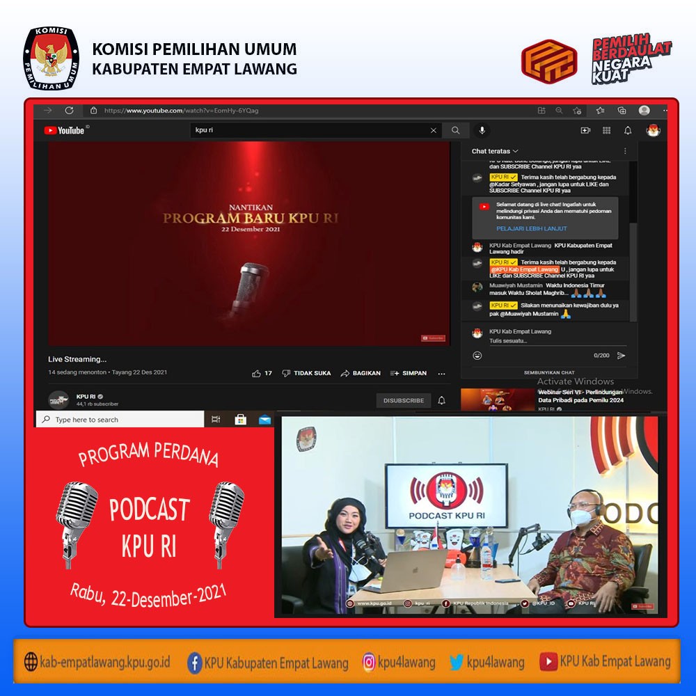 #TemanPemilih, KPU Kabupaten Empat Lawang menyaksikan Live Streaming Refleksi Akhir Tahun 2021 Komisi Pemilihan Umum Republik Indonesia melalui Kanal Youtube KPU RI mulai Pukul 13.15 WIB s.d selesai.