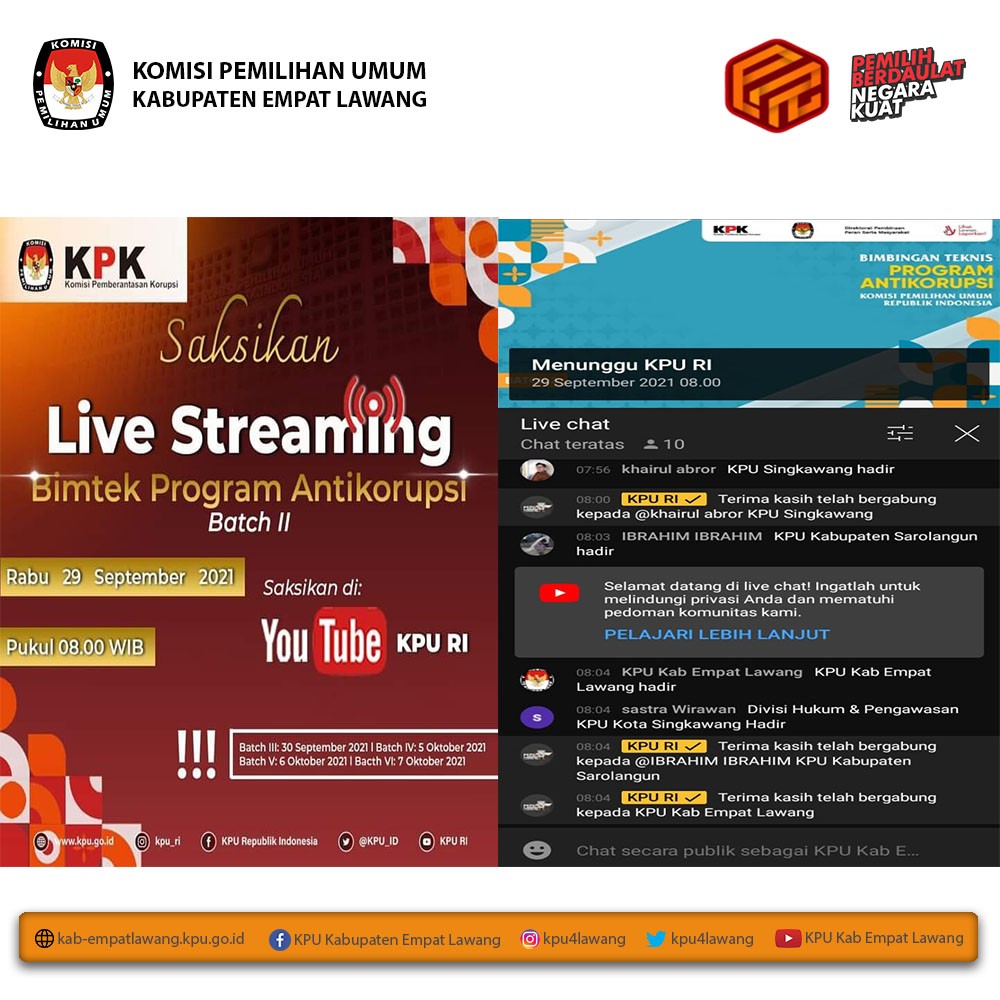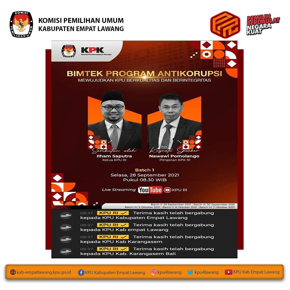 Anggota KPU Kabupaten Empat Lawang Divisi Sosialisasi, Pendidikan Pemilih, Parmas dan SDM Debi Yosiana, S.E. mengikuti kegiatan Webinar Mengulas Pemilu dengan tema Partisipasi Perempuan dalam Politik. Webinar diikuti melalui zoom meeting mulai pukul 09.00 WIB s.d selesai.