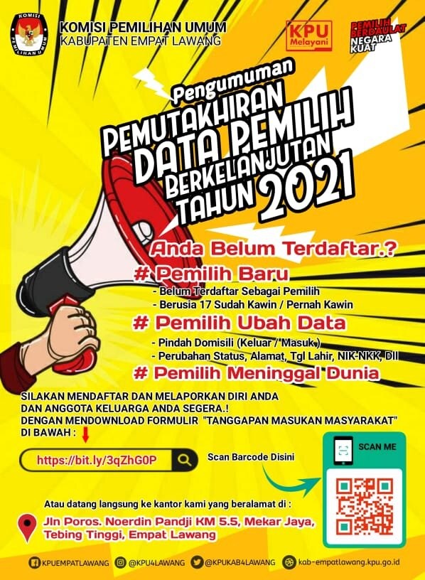 Bagi Pemilih yang belum terdaftar dalam Daftar Pemilih Berkelanjutan silahkan melaporkan diri ke KPU Kabupaten Empat Lawang.