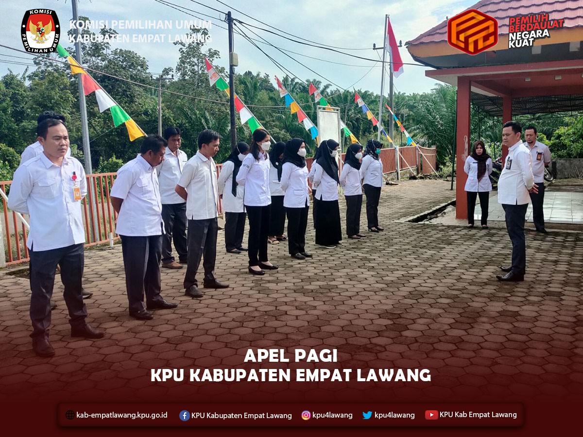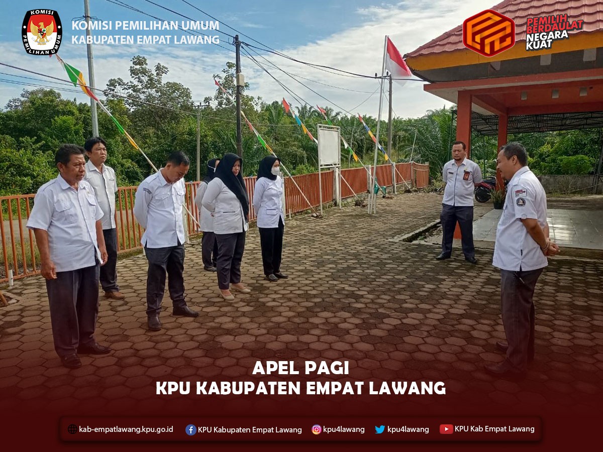 Anggota KPU Kab Empat Lawang Divisi Teknis Penyelenggaraan Hendra Gunawan, S.HI., M.Ag. bertindak sebagai pembina upacara, dan diikuti oleh Anggota KPU Kabupaten Empat Lawang, Sekretaris, para Kasubbag, Pejabat Fungisonal, Pelaksana, dan PPNPN KPU Kab Empat Lawang.