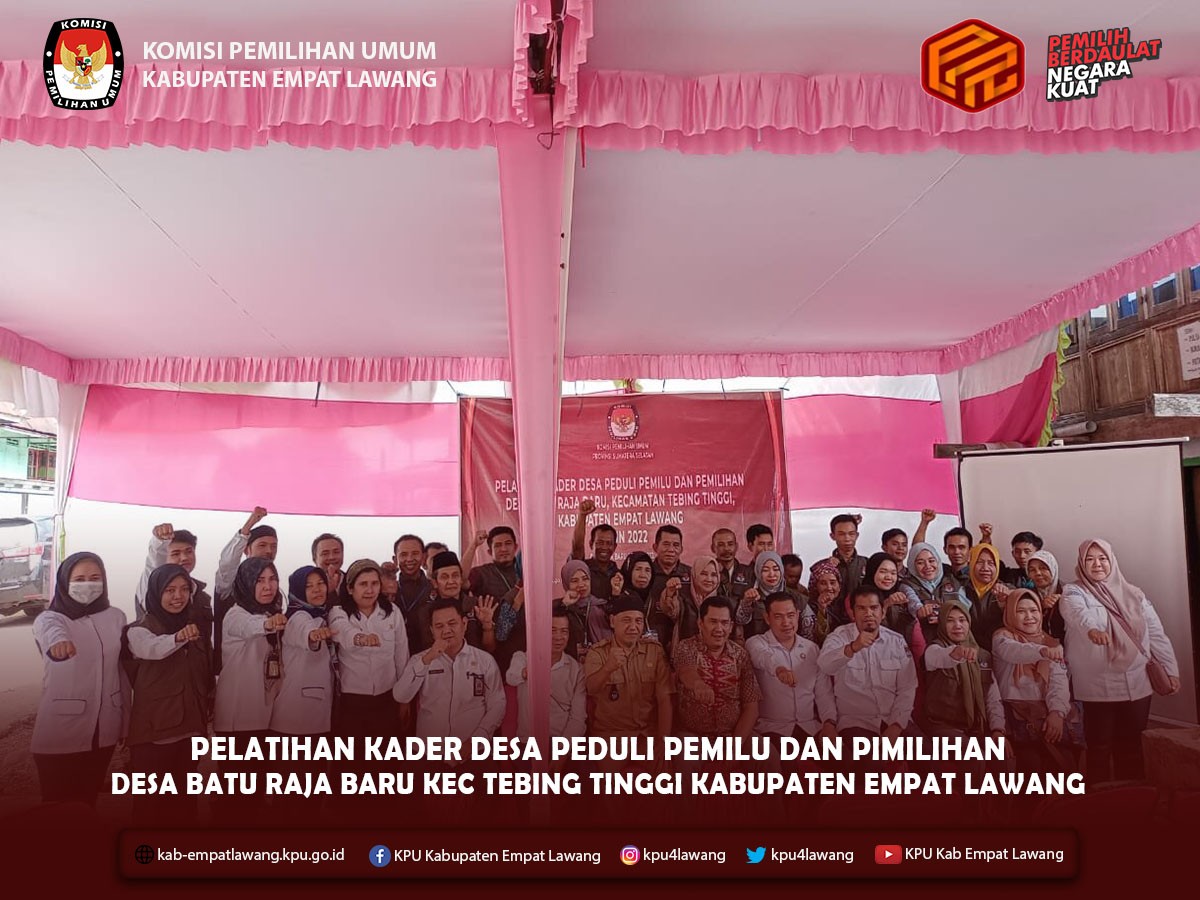 #TemanPemilih, Kabupaten Empat Lawang tepatnya Desa Batu Raja Baru Kec Tebing Tinggi, menjadi salah satu lokus Penyelenggaraan Program Desa Peduli Pemilu dan Pemilihan (DP3) yang diselenggarakan oleh KPU Provinsi Sumatera Selatan dan KPU Kabupaten Empat Lawang menjadi Fasilitator Pendidikan Pemilih.