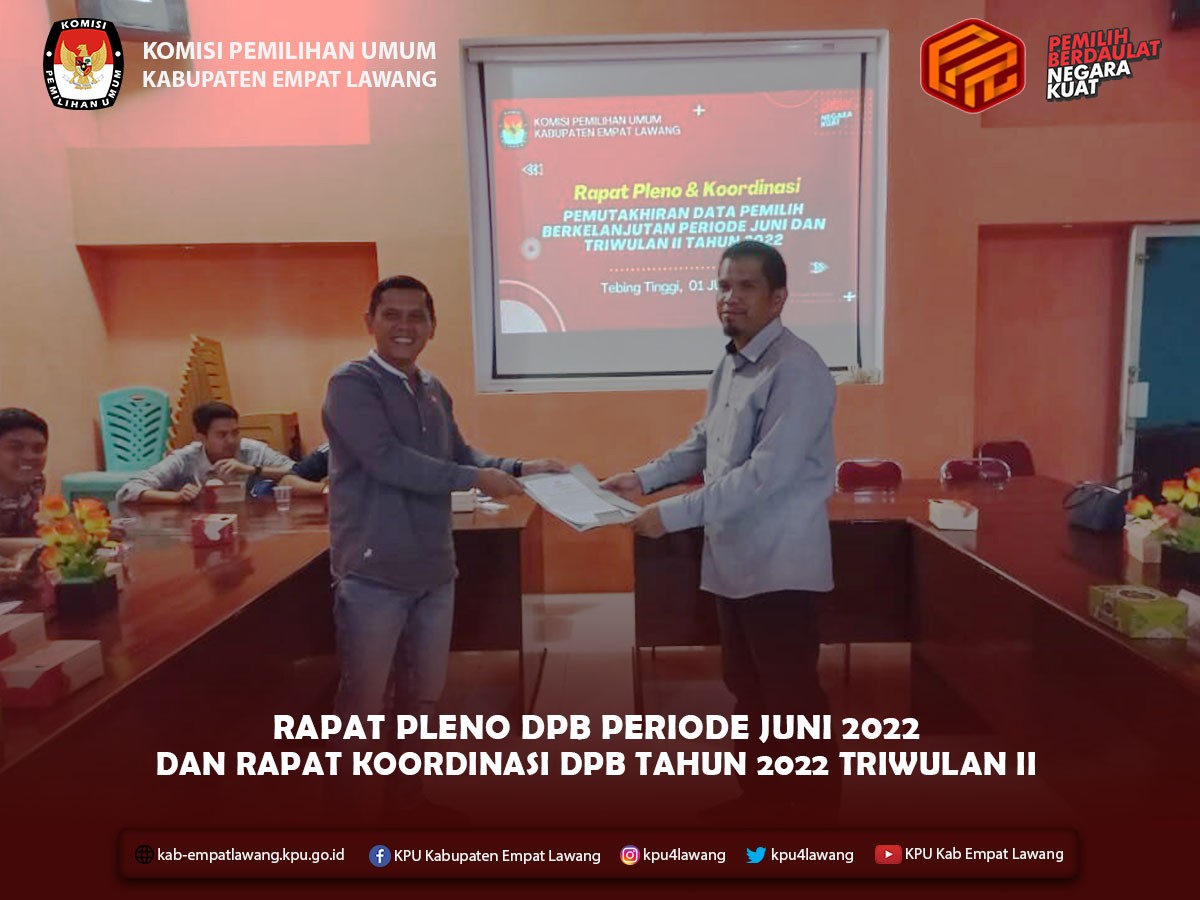 #TemanPemilih, KPU Kabupaten Empat Lawang melaksanakan Rapat Pleno Daftar Pemilih Berjelanjutan Periode Juni 2022 dan dilanjutkan Rapat Koordinasi Daftar Pemilih Berkelanjutan Tahun 2022 Triwulan II.