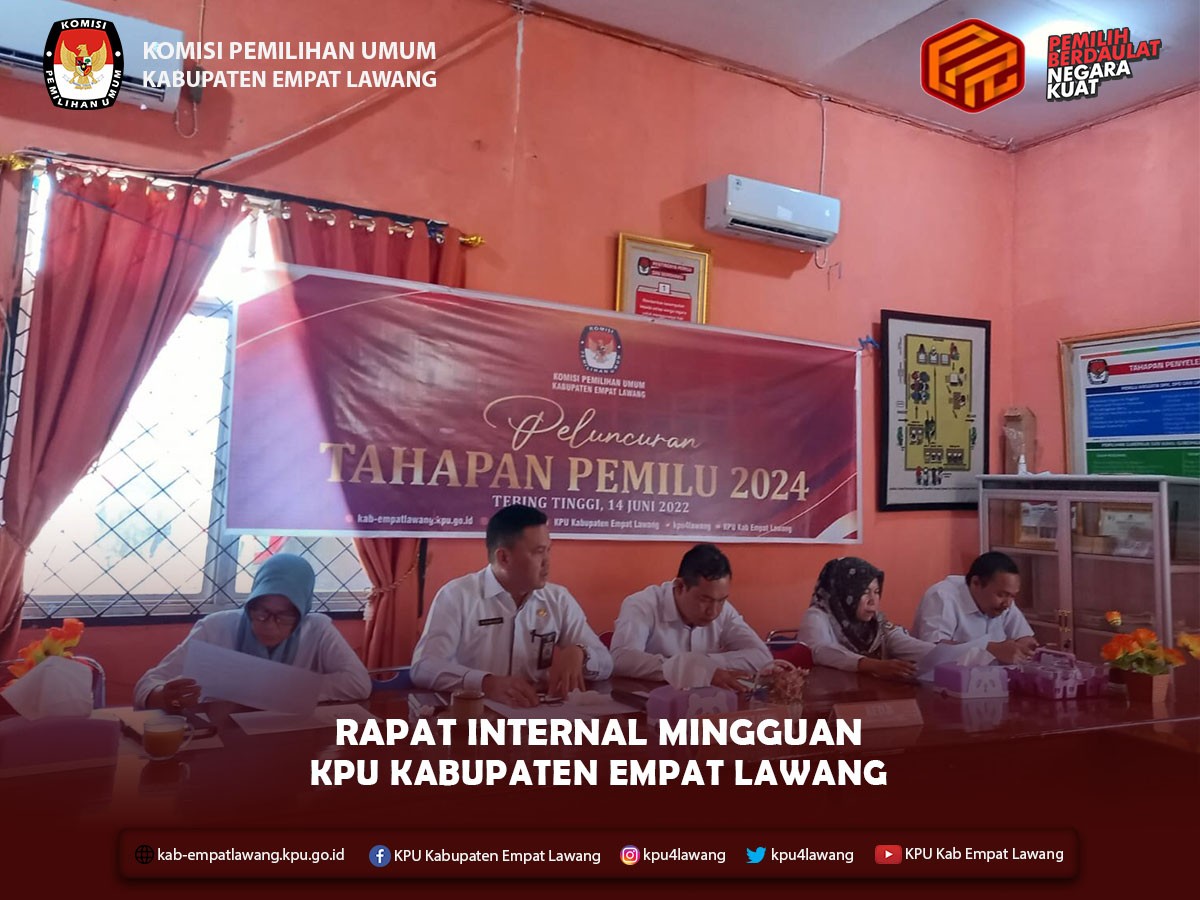 Rapat dipimpin oleh Ketua KPU Kabupaten Empat Lawang Eskan Budiman S.Pd. serta anggota dan didampingi Sekretaris KPU Kab Empat Lawang. Rapat dihadiri oleh Bawaslu Kab Empat Lawang, Dandim 0405 Lahat, Disdukcapil Kab Empat Lawang, DPMPD3A Kab Empat Lawang, Badan Kesbangpol Kab Empat Lawang, Polres Empat Lawang, Perwakilan Camat dan Perwakilan Parpol se-Kabupaten Empat Lawang.