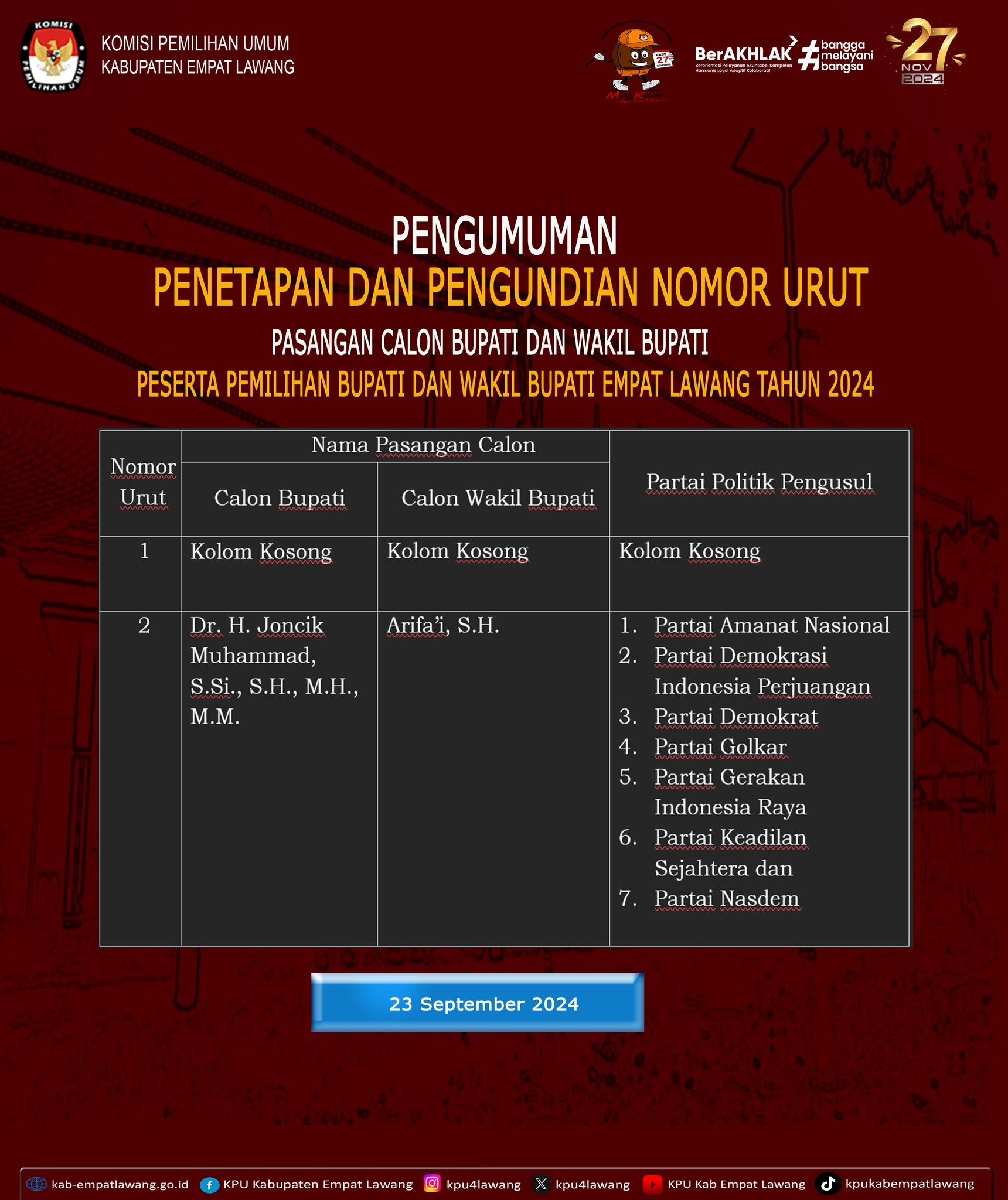 Pengumuman LADK Pasangan Calon Pemilihan Bupati da...